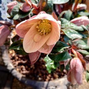 購入したクリスマスローズ植え替え😊 クリスマスローズの他は抜けるようにポット事植えてます。 キャメロット根が張りすぎてたからやってよかった。 見た目UP✨✨😍大きくなったように見える😁❣️