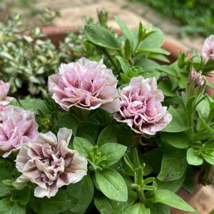 💗ペチュニア ホイップマカロン クラシカルチェリー💗 今日のお花『ペチュニア』 最近ペチュニアを投稿していませんでした😅 ちゃんとみんな元気にしていますよ💕 クラシカルチェリーさん、こんなに八重でゴージャスな時もありました。 今は花数はありますが、お花が小さくなりましたよ。暑いからかな?