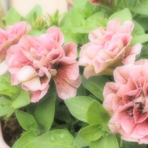 ペチュニアたちが調子をあげてきました🌼😆 上 VIVA タブルホワイトベイン 左下 ホイップマカロン レ・ミルティーユとクラシカルチェリー 右 モンローウォーク ベールヴァルド