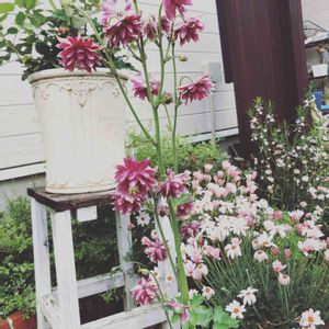大好きなお花、西洋オダマキが開花。 今年は小さな鉢に沢山の花を付けてくれました❤︎ 気づけば、バラも蕾が沢山! 雨が続き、花柄摘みをしていないのは見逃して下さい。 そろそろ夏の花を買いに行こうかな!その前に雑草どうにかしないとな…