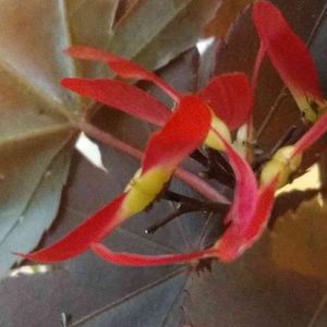 ノムラモミジ ノムラモミジに花が咲き、翼果も 見られる。 ノムラモミジは春の紅葉も美しい、