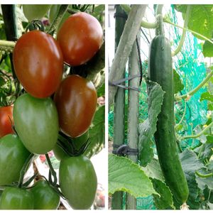 アイコ 本日収穫 6個 優良実の計測結果 長さ4cm 重さ27g 特大サイズです 今年は豊作👍 キュウリ 種から1株 苗から2株 栽培中 本日収穫 2本 写真の真っ直ぐなのを計測結果 長さ30cm 今季 合計58本 絶好調👍 やっぱり まだ梅雨でしたね 本日 雨ナリ~☔