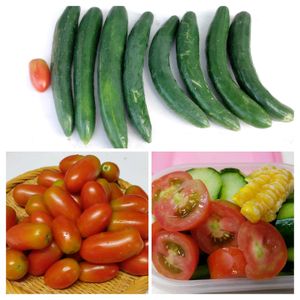 今日も朝から暑い 北海道も体温越えという暑さ 記録更新中 ヤバイ😝 キュウリ 記録更新中 まぁまぁ真っ直ぐなのがとれましたので 職場にお届けします ~弁当のサラダ~ アイコ 1個 キュウリ1/2本 トウモロコシ少量 カットしただけです😁