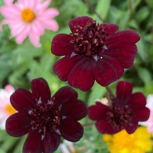 おはようございます☀ チョコレートコスモス♥️ 歩道の花壇に植え替えられていました🎶😍 キク科コスモス属 チョコレートの香りがほのかにする⁉️ 側に植えられた マリーゴールドの強い香りに負けてわかりません😅 台風一過🌬💨 危険な暑さが、予想されています🥵💦 お気を付けてくださいね😊🤗 🏷真っ赤な火曜日