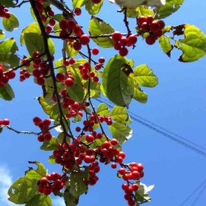 ウメモドキ🎵ルビー色(いろ)一色(しょく)になりました。💍ルビーなら大金持ちになります。野鳥🐦️が喜びます。
