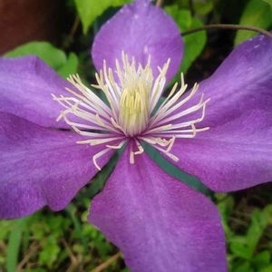 クレマチスダニエルデロンダ 二番花咲きました 大輪のパープル系🟣 蕊が美しいです