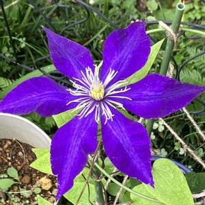 クレマチス ダニエルデロンダ 濃い💜の大輪の早咲きのクレマチスです 昨年小さな苗でお迎えしました 初開花( ^-^)です 綺麗な💜です