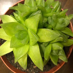 ギュウギュウのハオルチアさんお迎えしました🍀 この子のお名前わかる方いらっしゃいますか? このタイプの子、初めてなので何もわかりません💦 葉先は紅葉なのでしょうか? それともギュウギュウのせいでしょうか? 恐らく、寒い所に居たと思われる子です。
