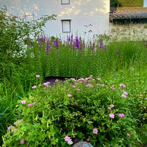 今晩は⭐︎ あっこさんの古住居の西のワイルドガーデン 植物達全てがワサワサ咲き続け すでに庭のカオス化じわじわと始まってる(´°̥̥̥̥̥̥̥̥ω°̥̥̥̥̥̥̥̥`) 2️⃣フィリスバイド アプリコットやピンクや様々な色変わりの小輪が可愛い薔薇😍 3️⃣ステファニーグッデンベルグやらデスデモーナやら ラ・マリエやらリサリサやら宿根草やら雑草やら、、、 4️⃣今は千鳥草に恋する🐸キョンタ😘