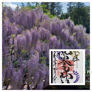 この時期にしか頂けない藤の柄入りの御朱印、頂いてきました。ここへは二回目だけど、午前と午後では陽の当たり方が、違うせいか、藤の色が、違って見えました。どちらも綺麗!!そして、ほのかな匂い、満喫しました😻