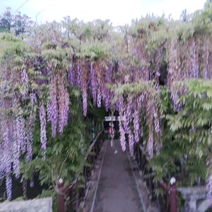 こんにちは☁️ 先日、娘家族と藤の花を見に〜🤳 西寒田神社⛩💜 毎年綺麗な藤の花💜🤍 この日は、天気も良く家族連れ多かったです🚗👶🤳
