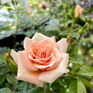 ミニバラとしては樹高があって、スリムな蕾から開くアプリコット色のお花が魅力です。 ラヴィングタッチ。