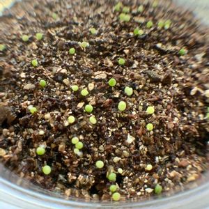 ギムノカリキウム🌵 赤ちゃん👶ワッサワサ‼️ 種蒔きから約2ヶ月で現在直径0.7㎜‼️ この中で錦になるのは何%かなぁ😊