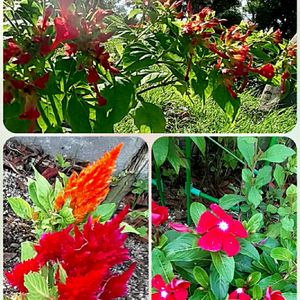 ⬆サルビアレグラ ⬅ケイトウ ➡️ニチニチソウ 大阪千島公園② 入口坂道の途中、夕日が眩しい坂の上!! 。:+* ゚ ゜゚ *+:。:+* ゚ ゜゚♥*⠜ 🏷️真っ赤な火曜日