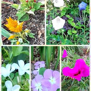 ↖ケイトウ ↗キキョウ ⬅ソケイ ➡️ニチニチソウ ↪マツバボタン 大阪千島公園③ 坂道の途中 可愛いお花がいっぱい 咲いています♥*⠜