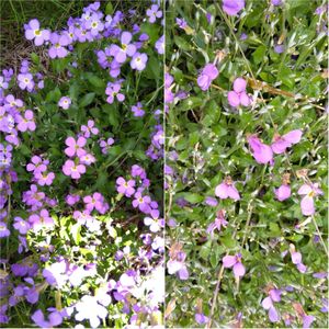 先日の投稿のよそのお宅に咲いているお花がこちらです。 (空き家の歩道縁のお花を失礼させていただきました) もうけっこうお花も終わりかけだし、雑草まじりでわかりにくいですが、何のお花かわかる方いらっしゃいますか? 草丈は低く15センチほどで、北海道にて5月初旬ぐらいから咲き始めているかと思います。 葉を見る限り、芝桜ではないような?🤔