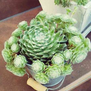 巻絹。1ヶ月前くらいに購入後、こんなブリキ缶に植えてしまったもんだから溢れて大変なことに(´д`|||) ランナーも大分大きくなってそろそろ別けてあげた方がいいのかな??ランナーから根が出るの?ランナー切っていい? 初巻絹。どうしたらいいんでしょうか( ´△`)? 誰かぁ教えてくださぁい!!