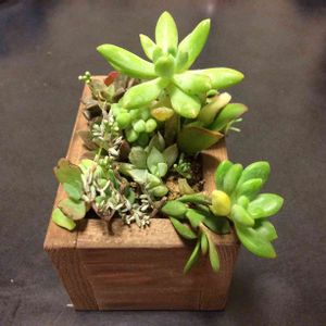セリアで買ったミニチュア達と、セダム、ガジュマル、サボテンをよいしょして、箱庭完成*\(^o^)/*ところで、トゲトゲのサボテンの種類がわかる方いますかm(_ _)m?