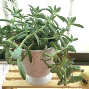 【質問】念願のグリーンネックレス!!!でも根っこが何か変…根っこの辺りが枯れてるから植え替えの前に切っちゃおうか迷ってます。切らずにこのまま植え替えの方がいいのかな?