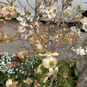 ハナミズキがこんなになってしまいました どうして❓😭 どうしたらいいんでしょう いつも真っ赤な実を付けてくれてたのに😫