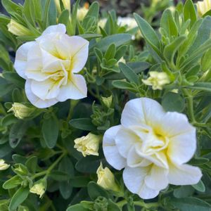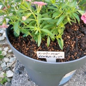 先日 カインズで購入した ペチュニア💕 2ポット 上 スーパーベル ダブルミルクレープ 下 花衣 藍染