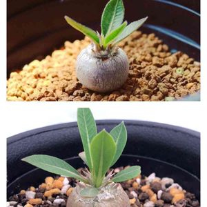 一年中葉を落とさない実生グラキリスと、やっと目覚めた恵比寿大黒。 この体格差、なんか既視感があると思ったらアレだ。 ポプテピピックだ。