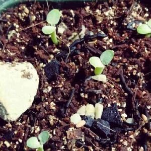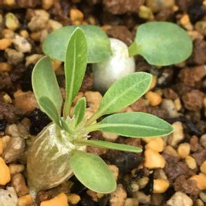 パキポディウム(恵比寿大黒)です。発芽後2週間。冬迄にある程度育って欲しいです。 :覆土しない。
