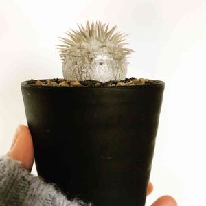 今年のパキポはエビス大黒5、ホロンベンセ3、グラキリス1。 その他は数十粒撒いて全滅… ダイソーのドーム型プリンカップに移植したので、フタをして無線LANルーターの上に置いて加温しながら越冬を試みます