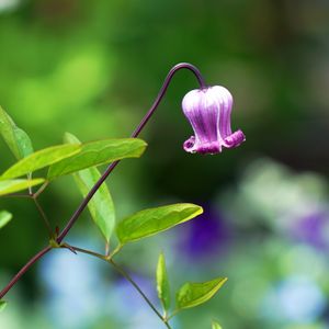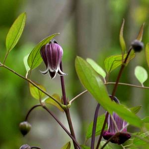 クレマチス・藤かほり(テキセンシス系)です。ぽってりした藤色の壺型クレマチス。光沢を帯びてとても綺麗です。