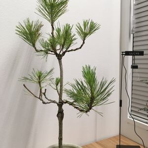 🟨マツ属 蛇の目クロマツ (斑入り)🟩 私のプロフィール画像の株です。 まず初めに、これは黒松なのでしょうか?新芽がすごい赤っぽいのですが…(黒松として購入) 詳しい方ご教授ください🙇♂️ 黒松という体で話します。 こちらは、クロマツの園芸品種、「蛇の目黒松」です。マツの「蛇の目」とは斑入りのことを指します。細い葉にも、しっかりと白斑が入っています。しかし、古くなった葉は緑色になる傾向があります。あと冬の方が斑の色が綺麗です。季節斑なのかな? 本来の濃い緑の葉に、鮮やかな斑が入ることで、明るい雰囲気になります。技術がないので、自分は普通に育てているのですが、盆栽風にしても良さそうですね! 去年の冬は雪を被ってしまいましたが、寒冷地に適応した結果である、クロマツ自慢の細い松葉のおかげか全然害が出ませんでした。寒さにはとても強いです。それに、暑さにも中々強いです。斑入りですが、日焼けもありません。かなりの強健種ですね! (見た目を気にしなければ)育てやすいのは木本類初心者には優しいで す! アカエイと申します。園芸大好き中学生です。ハオルチアの写真を主に、いろんな植物を投稿するので、気軽に見ていただけると嬉しいです☺️コメントしていただけるともっと嬉しいです!