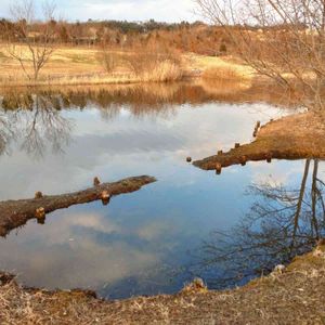 ハルニレの木にまだ葉はありません。未だに少し雪が残っています。ですが、キバナノアマナがしっかり根元で満開に咲いています。 🏷️水面反射(*^^*ゞ