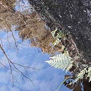 🏷毎月4日はシダの日 🏷水面反射 に参加させて頂きます🙇♀️ 川面ギリギリ 岩から、シダが。 空 雲 木 シダ が映り込み 揺らめく 川面です。