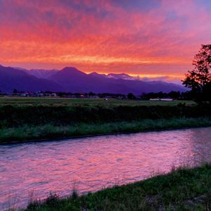 こんばんは(*´∀`)♪💕 🏷土曜はお空の発表会🎶 🏷雲仲間🌤 🏷夕焼け🌅 🏷水面反射 土手から見た 日本アルプスに沈む夕日がとてもキレイでした 皆さま楽しい休日を🤗💓