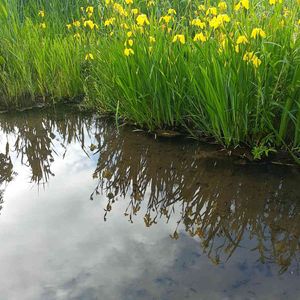 目立たぬ処でキショウブが咲いていました。 🏷️雲仲間に参加させて下さいね。 〈5.15撮〉 🏷️水面反射(^-^)/
