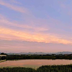 水田に映る夕暮れ時の景色に癒されました☺️✨✨