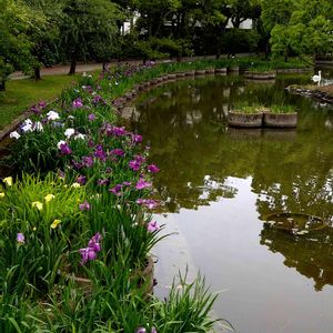 菖蒲💜🤍💛🌿 石橋文化センターの 池の畔 菖蒲の花が見頃です 🏷水辺の水曜日に初参加させていただきます💙