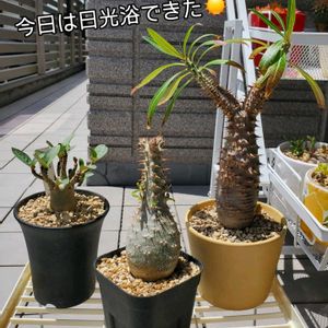 パキポとアデニウム経過 5月に植え替えて、 何本か枝を剪定してみて、 今こんな感じ😆 枝を切ったとこから 新芽ぼわーっと出てきて、 切るの、正解かも✨ ツボミかも? と思って待ってるものは いまだ葉にも花にもなりません。 ちびっこロスラーツムは頭フサフサに。 昨年実生のグラキリス、アデニウム、恵比寿笑いは 現状維持かな。 この夏、大きく成長しますように🌟