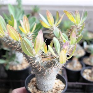 パキポディウム・ロスラーツム 綺麗な黄色に色づき始めてます そろそろ夏型も休眠準備ですね
