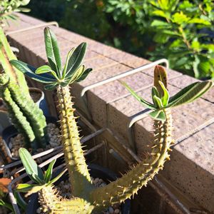 昨日の続き 🌀強風でプルメリアが倒れウンカリーナ2号に直撃💥 ウンカリーナは折れてしまったが来年また🌱出るだろうから問題なし😊 それより周りのパキポディウムたちの方が心配だったが無事のよう?だ😔 今日は穏やかな1日だったが早めに冬支度も考えないと😓 ☔️雨でぐっしょり低温のパキポたちが少〜し気になる