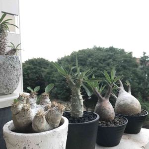 20180617 友人より譲り受けたパキポディウム四種類 左からホロンベンセ、サキュレンタム、ブレビカウレ、ロスラーツム グラキリウス