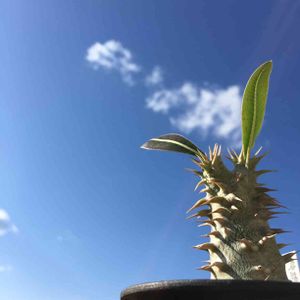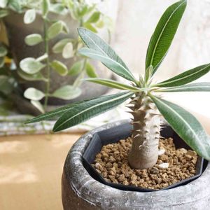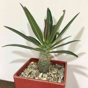 サボテンミサイルで この植物と鉢を選び植えてもらい 大満足。 名前は、パキポディウム ロスラーツム です!