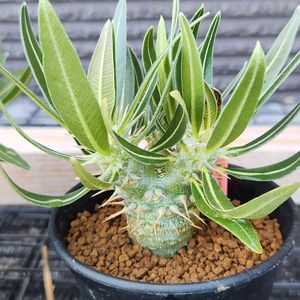 前回から1ヶ月ほど経過〜🤭結構葉っぱの数も増え、幹も太くなったような!?🌱表面の土が苔臭かったので、表面だけ新しい土にしました。パキポディウムって成長が遅いんですかね??なかなか大きくならない〜