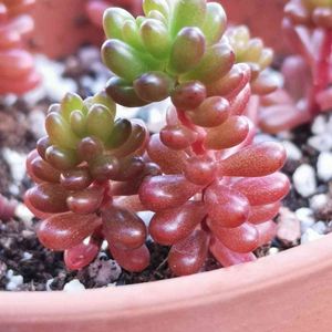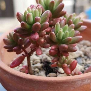 桃太郎の花芽🌸♪ モルタル寄せ植えのこの子は雨晒し、雪ざらしでも大丈夫👌 さすがに-10℃はダメだろうと寒波前にいれたら、可愛い花芽ちゃんが💕💕 多肉ってたくましい👍に