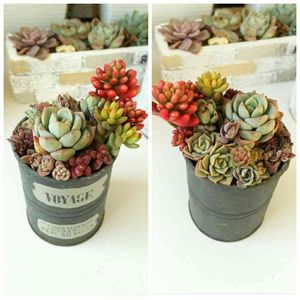 スカスカになった寄せ植えを仕立て直しました‼️ ドジな私は缶の正面を考えずにチマチマ😂なので後ろからもパシャリ😵 明日は水やりできますように‼️