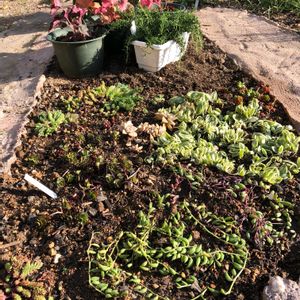セダムガーデン始めました❣️ 多肉系の事はさっぱり分からないのですが、手始めに管理が楽そうなセダムを集めて植えてみました。置いただけですが😅 ドラゴンズブラッド以外は頂き物ばかり。 少しずつ種類を増やしていきます。