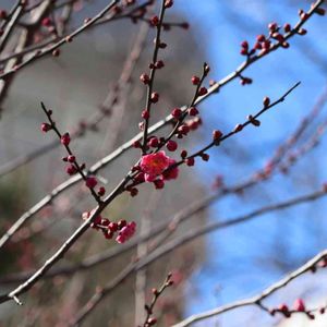 大阪城の梅林公園では早咲きの梅:寒紅(かんこう)が開花しました❀.*・゚ ・ 大阪城公園「梅林」は関西有数の梅の名所。約1,270本近くの梅が植えられ、1月下旬~3月下旬まで、梅の花見を楽しむことができます… まだツボミが多いけど春を感じますね♡❀.*・゚