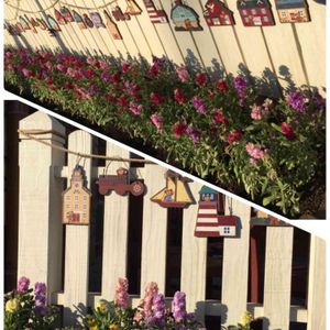 可愛い扉の門 🌸が並んでいる(﹡ˆ﹀ˆ﹡)♡ ストック? アジュガ? この家に住みたいな〜〜💕
