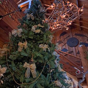 先日、友達とランチに行ったお店に素敵なクリスマスツリー🌲が飾られてました。 リース、ドングリの作品も可愛いですね🩷