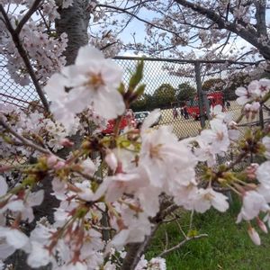多分、ソメイヨシノ🌸 新学期に備えて,小学校で 消防確認が行われてました🚒⛲ 入学式まで,,散らないでぇ〰️😃