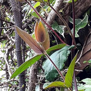 今日のお庭 朝イチ撮れたて便 今日は雨*☂︎*̣̩⋆̩ 部屋から( ∩'-'📷⊂ ) ニオイ バンマツリの花芽 雨のあたらない軒下に 鉢植えで育てています。